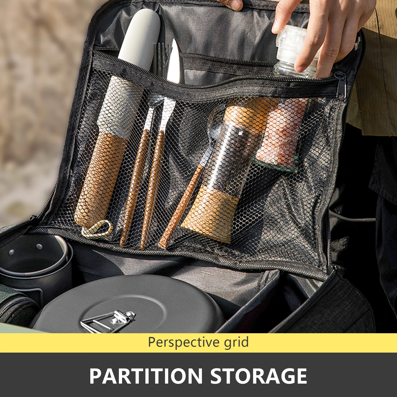 This 26L camping storage bag is designed to keep your outdoor cooking and camping supplies neatly organized and easy to transport. Featuring a large-capacity interior, it comfortably stores gas tanks, cookware, utensils, and essential camp gear. The adjustable partition design allows flexible organization, helping prevent items from shifting or colliding during travel. Made from durable materials, it provides reliable protection for camping equipment in outdoor conditions. The folding design makes it convenient to store when not in use, saving space at home or in your vehicle. Ideal for camping, picnics, hiking trips, and outdoor cooking setups, it offers both practicality and convenience. Portable and well-structured, this storage bag is a must-have for organized and stress-free outdoor adventures.